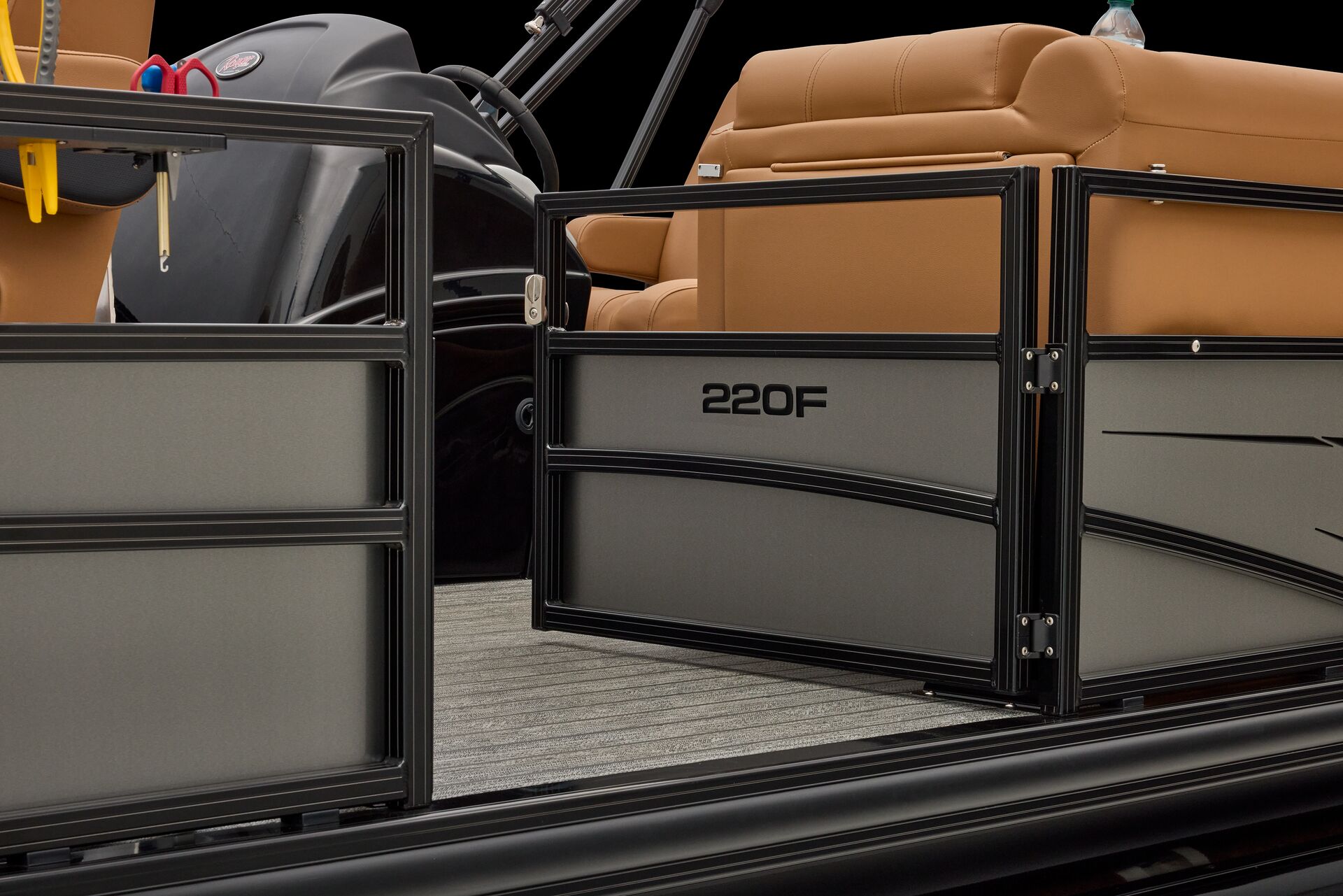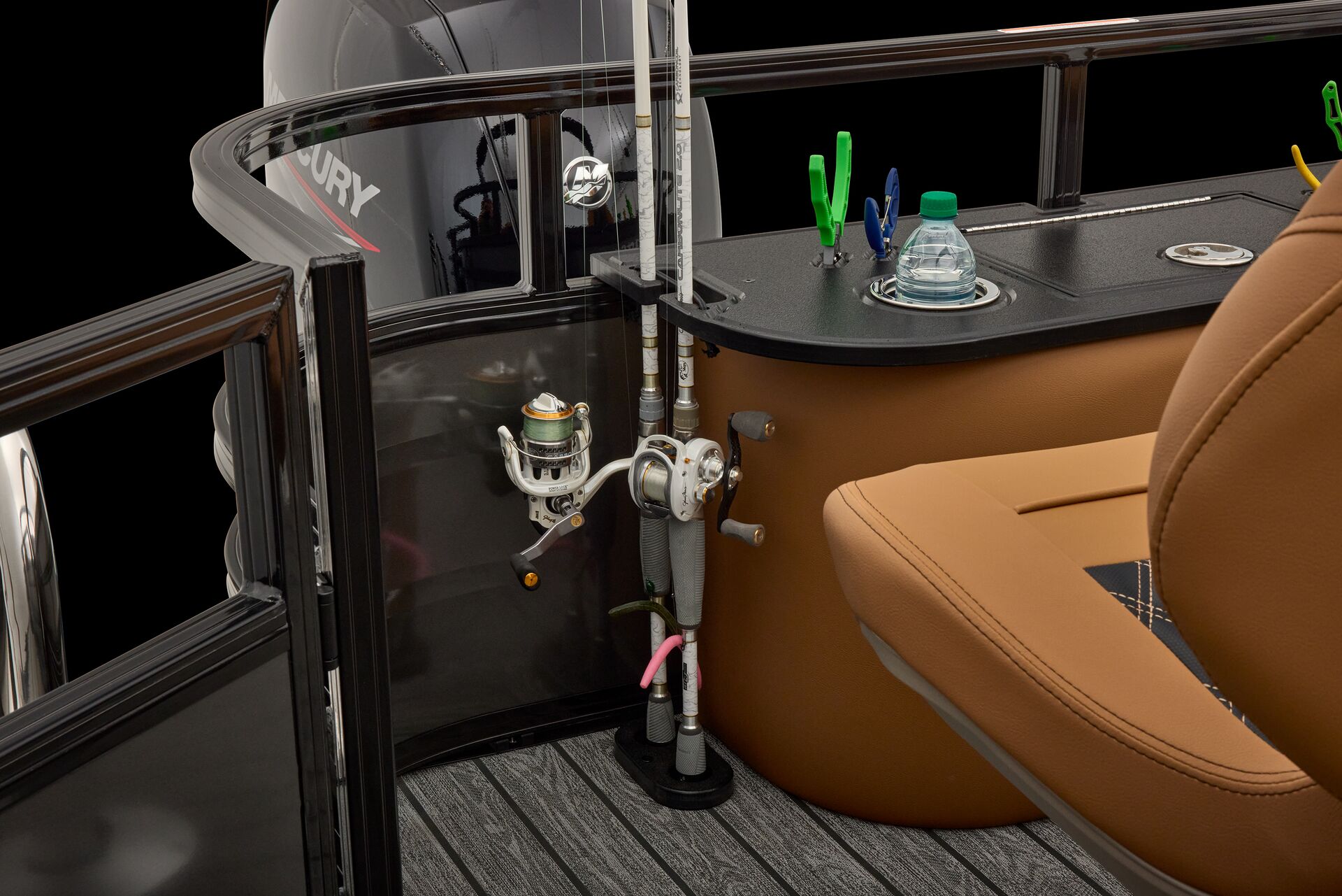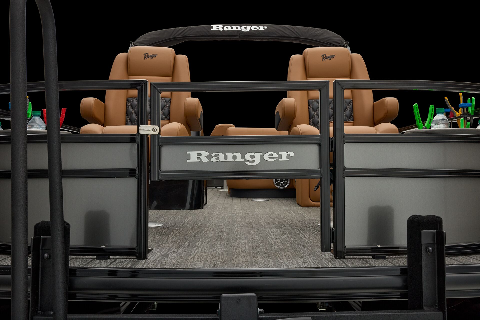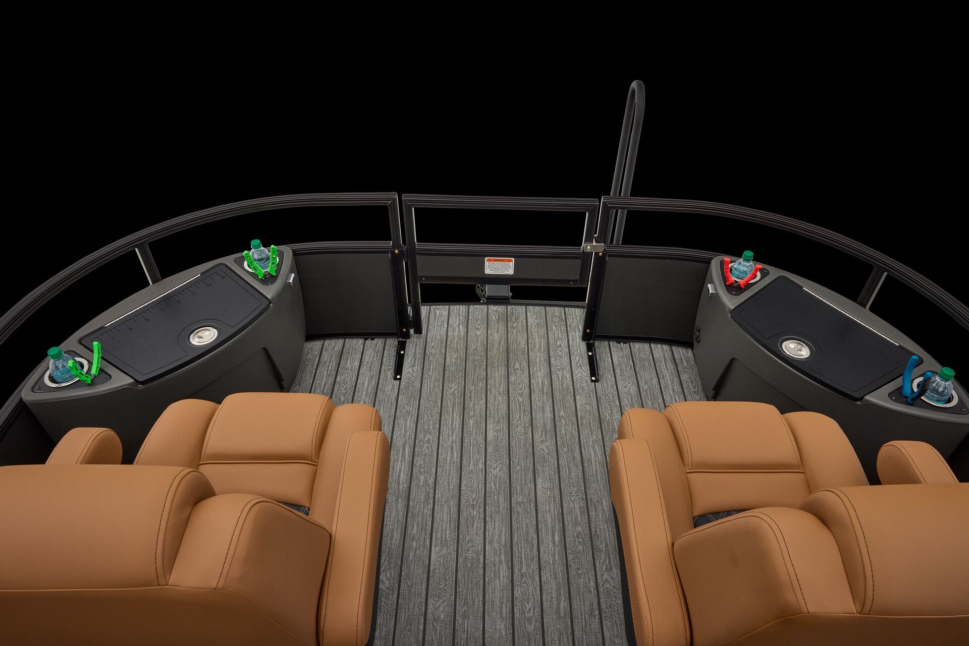 Whether the urge to fish strikes, you want a machine that’ll fit your whole crew and all your gear. The Ranger 220F is a fishing-first pontoon that’s loaded with all the fishing necessities and doesn’t skimp on creature comforts. Every inch of this all-in-one pontoon has something for everyone. For fishing features, fore and aft fishing stations feature livewells, rod and tool holders, and plush, premium seats. The front are captain's chairs with self-leveling arms that swivel 360 degrees. An optional trolling motor lets you sneak up in the shallow where lunkers lurk. A lockable rod box stows your sticks securely out of the way, but ready to go at a moment’s notice.