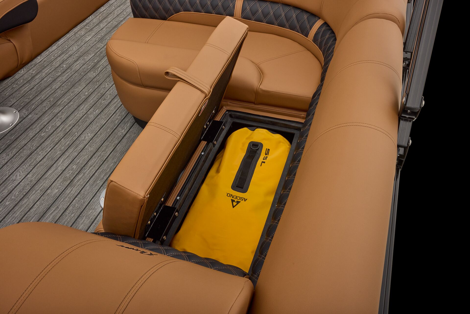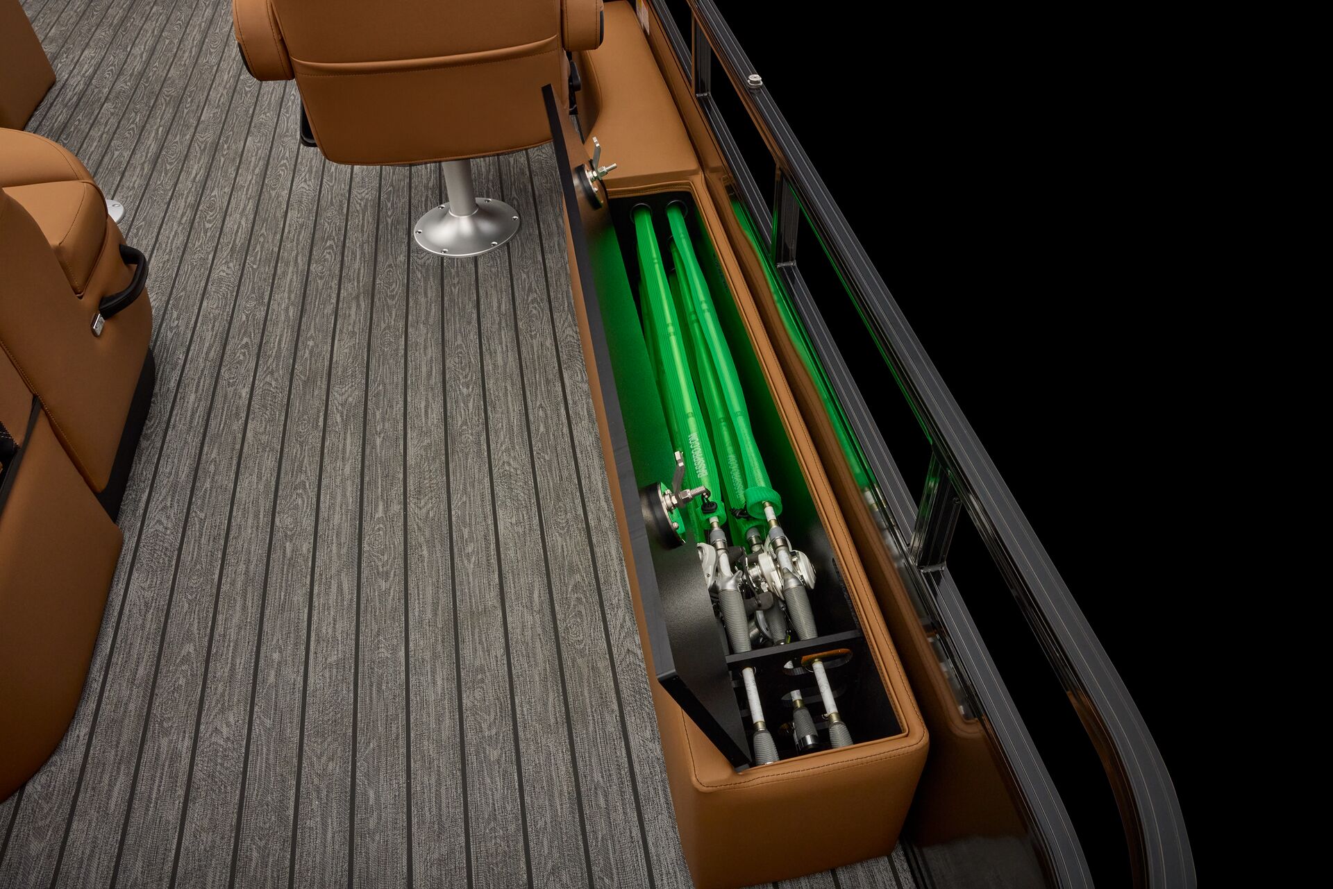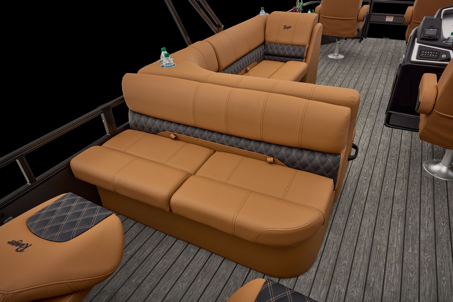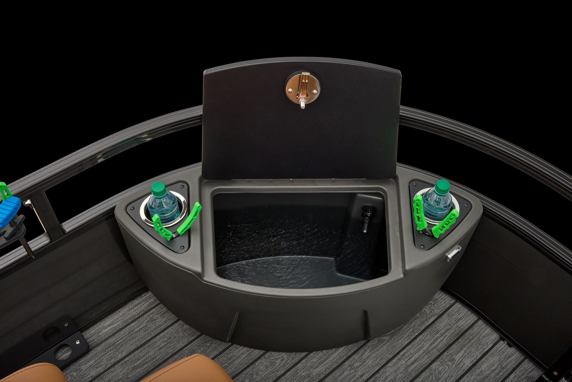 Whether the urge to fish strikes, you want a machine that’ll fit your whole crew and all your gear. The Ranger 220F is a fishing-first pontoon that’s loaded with all the fishing necessities and doesn’t skimp on creature comforts. Every inch of this all-in-one pontoon has something for everyone. For fishing features, fore and aft fishing stations feature livewells, rod and tool holders, and plush, premium seats. The front are captain's chairs with self-leveling arms that swivel 360 degrees. An optional trolling motor lets you sneak up in the shallow where lunkers lurk. A lockable rod box stows your sticks securely out of the way, but ready to go at a moment’s notice.