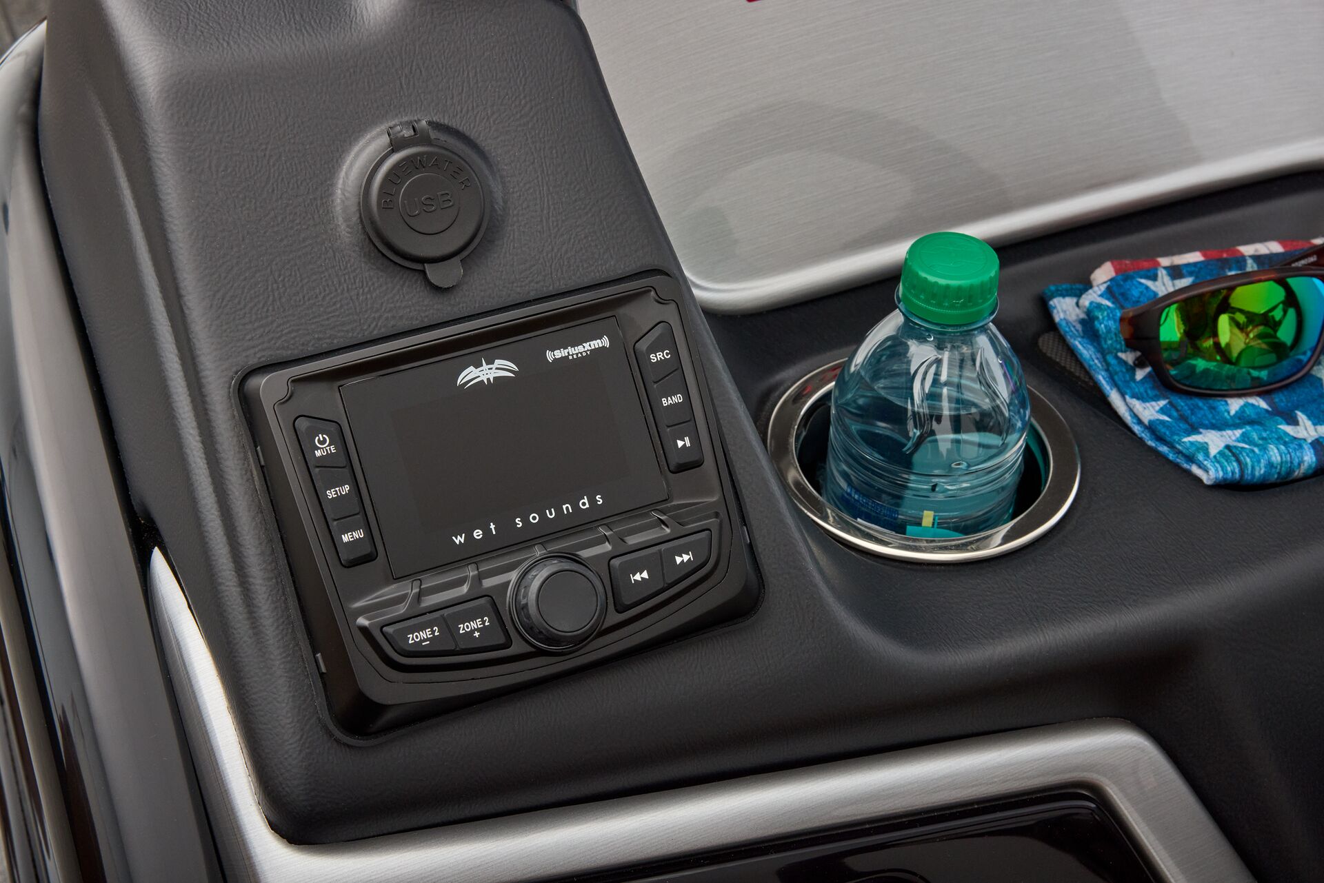 When it’s time to relax, the 220F delivers comfort, convenience, and space in spades. Huge, overstuffed lounges let you sprawl atop hidden storages, including a baitwell under the back sofa. The helm is designed to deliver a comfortable command of the water and every onboard system, from the Wetsounds Bluetooth stereo, and optional fishfinder and the exclusive 7” Ranger System Monitor that displays engine parameters and more.